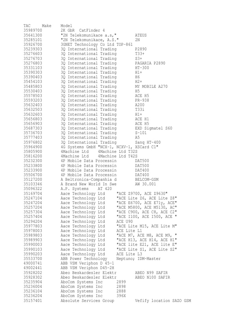 Imei Tac to Ue Model - [TXT Document]